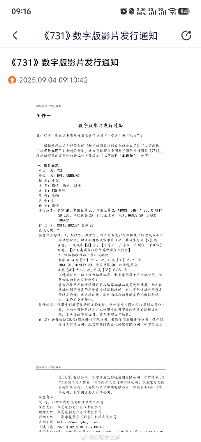 据极目新闻消息,记者从湖北省银兴院线及多家影城处获悉,目前他们已经接到不少《731》的单位包场和个人咨询。武汉百丽宫影城负责人郑先生透露,早在8月份,就已经有单位跟该影城预定了《731》黄金时段的包场。