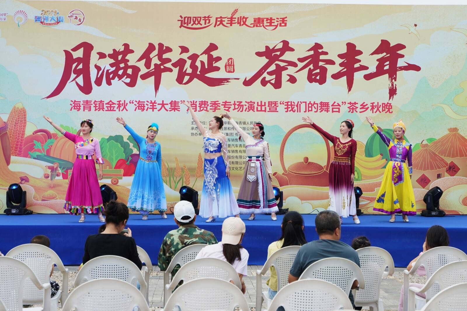 月满华诞,茶香丰年,精彩持续至10月5日。欢迎广大市民游客前来海青北茶商街逛海洋大集、看民族演出、选优惠好物,共度双节假期,共庆祖国华诞!