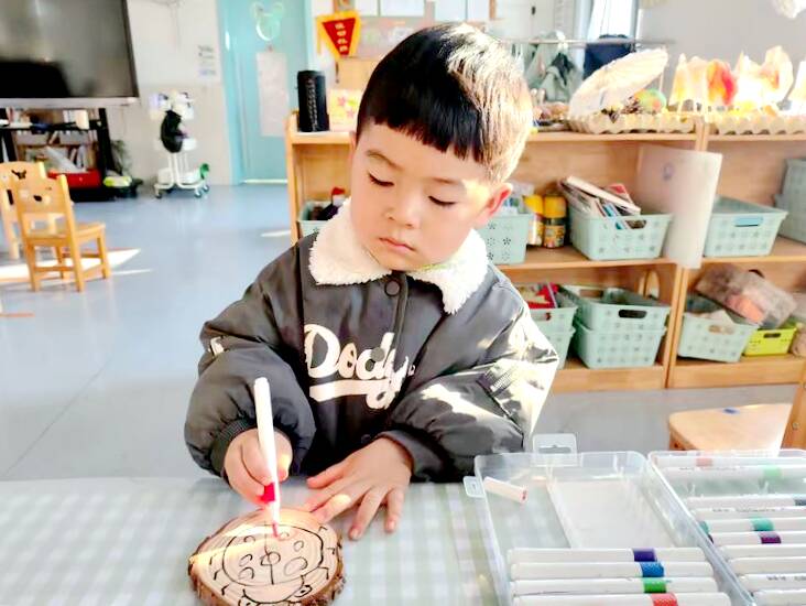 活动中,美工区变身自然创意工坊,孩子们沉浸式玩转天然材料,将松果拼搭成可爱小动物,把树叶剪裁出灵动纹样,用树枝编织出别致小摆件。专注的小脸上满是探索欲,一粘一贴间迸发奇思妙想,指尖流转的不仅是自然肌理,更藏着对草木生灵最纯粹的喜爱,让自然手工启蒙愈发生动鲜活。筹备阶段,幼儿园里一派热闹景象,小朋友们化身创意小掌柜,通过颜料涂鸦、黏土装饰、自然材料点缀等方式打造吸睛招牌,还小心翼翼陈列亲手制作的干花书签、麦秆小扇、贝壳摆件、果壳拼画等作品,在忙碌中体验动手创造的成就感与分享的期待。