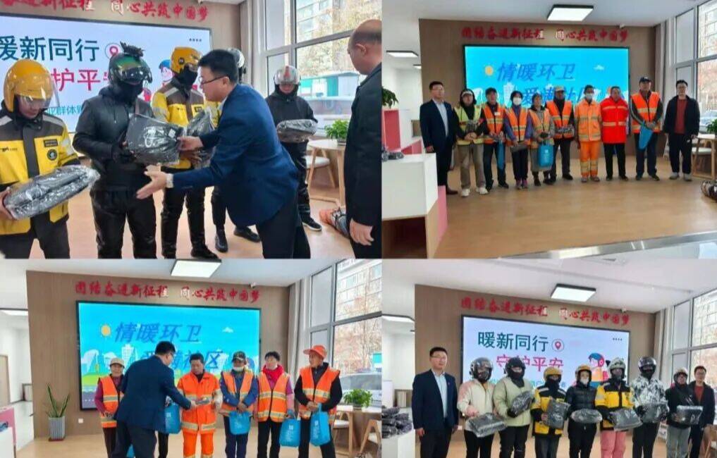 交流互动环节中,社区负责人面向现场户外工作者深情寄语,着重强调了大家作为“社区安全隐患第一发现人”的独特价值:“骑手师傅们穿梭街巷配送、环卫工人们坚守岗位保洁,每天走遍社区的角角落落,比谁都熟悉辖区路况设施,比谁都了解邻里所需所盼。路面的一处破损、设施的一丝老化、独居老人的生活不便,或是隐蔽角落的安全隐患,大家往往是最先发现的人。今天我们正式聘大家为‘社区安全隐患第一发现人’,就是要把这份贴近基层、直达一线的优势充分发挥出来。希望往后大家在工作途中多留一份心、多尽一份力,发现任何安全隐患或民生需求,随时通过社区微信群、服务热线等方式告知我们,让社区能第一时间响应、第一时间处置,咱们携手并肩把家园建设得更舒心、更安全、更宜居!”多位户外工作者积极分享了自己在工作中发现安全隐患的经历,并提出宝贵建议,社区记录组逐一登记并现场回应,进一步完善了社区共建共治的安全网络。温馨的物资发放环节将活动氛围推向高潮。社区工作人员将精心准备的保暖手套、车把套等御寒物资逐一送到每位户外工作者手中,这份“量身定制”的关爱让大家倍感温暖。“这些物资太实用了!戴上手套骑车,再也不怕寒风冻手了,社区的关爱太及时了!”一位外卖骑手接过物资时感动不已,连连致谢。