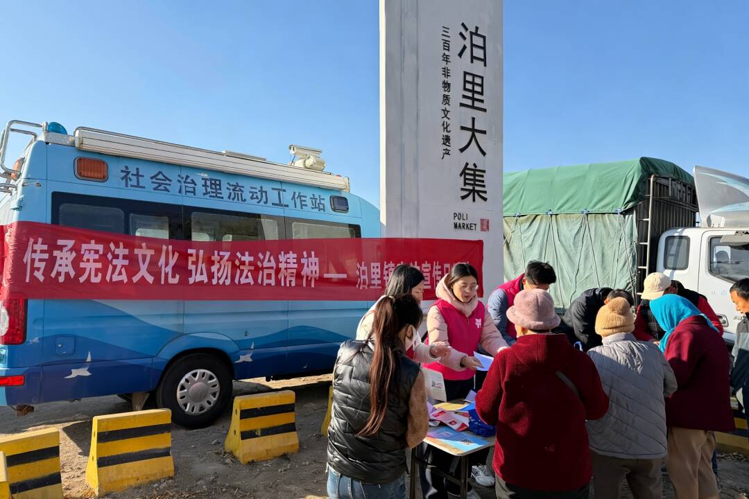 为深入学习贯彻习近平法治思想,增强全民法治观念,近日,泊里镇综治中心、司法所、妇联、红十字会在泊里大集联合设立“普法宣传点”,围绕“学习宣传贯彻习近平法治思想,推动宪法深入人心”主题,开展了一场“接地气、有温度、见实效”的法治宣传活动,将专业的法律知识转化为群众听得懂、用得上的生活语言,推动法治精神深入人心、融入生活、服务民生。