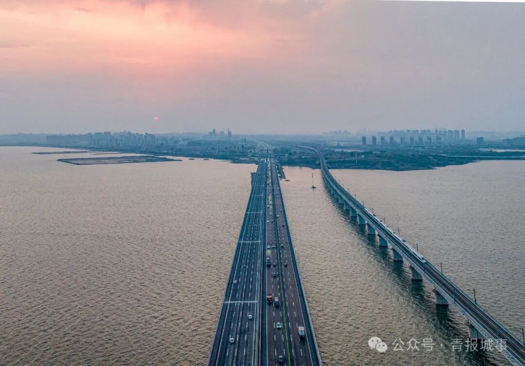 青兰高速青岛段的女姑口特大桥上车流不息。