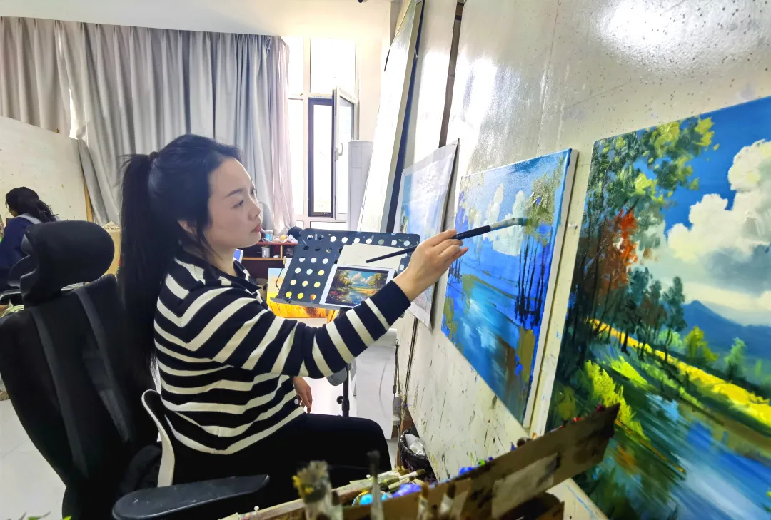 深秋,是一年中最浓墨重彩的季节。在青岛西海岸新区张家楼街道的画美达尼乡村振兴片区,千亩红枫林正在悄然“着色”“上妆”。大批市民游客循着节令的召唤,前来解锁这片红枫林浓浓的诗意、独特的“渐变美学”。上周末,画美达尼乡村振兴片区枫叶渐红,吸引游人观赏漫步林间,当你沉醉于大自然雕琢的艺术氛围中,可能在不经意间就被“绘入”了农民画师的油画作品里,成了一位“画中人”。起笔:把“大泥沟”画成“达尼村”故事的发生要从一支小小的画笔说起。当寻求创作灵感的画家,遇上渴望改变的村庄,艺术的种子便深深扎进了肥沃的土壤。“作画人”与“大泥沟”的两情相悦。三十多年前,“大泥沟”这三个字就是大泥沟头村最直观的写照。为改变村庄面貌,村干部带领村民开始大规模植树造林。效果“立竿见影”,生态环境变美了,“大泥沟”改变了模样。彼时,从东北到青岛创业的农民画师解中才,也在四处寻找一处能安心创作的“世外桃源”。他辗转多地,最终来到大泥沟头村,立刻被这里背山面海、绿水青山的景致深深打动。2003年,他决定将自己的绿泽画院落户于此。而此时的大泥沟头村也面临着抉择:是上马能快速给村子带来收益的砖窑项目,还是“培养”这颗尚未发芽的艺术种子?村干部和村民们反复考量,还是算出了生态保护与长远发展的大账,最终选择了画院。这个决定,既给了画家一块安放画板的桌案,也由此改变了村庄的命运。绿泽画院艺术家成“村民”,村民成“艺术家”。画院安顿下来后,绿泽美术馆、解中才美术馆、绿泽美术职业学校等相继建成,逐步汇聚了30多位高级职业画家、600余名画师。曾经的大泥沟头村成了远近闻名、画师云集的“达尼画家村”。除了解中才,叶建明、鹿成君、高伟等众多艺术家也先后定居于此,开办了自己的工作室、艺术馆。他们的到来,为村庄带来了油画、陶瓷、工笔画、书法等20多个艺术门类,更让达尼画家村形成了一个多元共生的“艺术生态圈”。与此同时,在街道的支持下,村里和绿泽画院合伙办起了“农民画校”,免费教授油画课程。村民黄秀芹干了半辈子农活,如今成了农民画家,吃上了“艺术饭”,平均每月有3000多元收入。“农民画校”开办以来,已免费培训村民100余人次,20多名农民拿起画笔,完成了华丽的“艺术转身”。绿泽画院的画师在创作油画运笔:从一幅油画到百花齐放当这里的每一寸土地都成为画布,每个人都是创作的参与者,一场艺术与乡村的深度交融,正徐徐描绘出一幅乡村振兴的鲜活长卷。画入画乡,产业开花结果。从承接韩国油画临摹订单,到作品远销欧美十余国、畅销国内20多个省市,达尼画家村以油画产业年产值超3亿元的成绩,赢得了“江北第一画家村”的美誉。村庄培育油画产业,绝非易事。达尼画家村另辟蹊径,摒弃了业内常见的“流水线作业”模式,坚持每幅作品都由画师独立完成。尽管产出效率不及“流水线”,但由于每一幅画作都承载着独一无二的艺术灵魂,凝聚着创作者的巧思与情感,因而产生了赢得市场青睐的独特价值。为打通艺术与市场的桥梁,达尼画家村探索出了独具特色的“七个一”市场化运行机制——通过成立一个联盟、制定一个章程、签订一份公约、招引一支运营队伍、建立一个利益分配机制、开设一个网络交易平台、开办一个特色“村拍会”,让艺术家、企业、村庄、村民形成了协同发展、共同致富的有机整体。紫斐农业扎根画美达尼乡村振兴片区,构建起集蓝莓种植、研发、精深加工及销售于一体的全产业链发展模式画乡入画,乡土成为崭新画卷。当艺术沉淀为乡村的底色,画笔便越过画布,完成了从“作画于乡”到“乡村入画”的进阶。以文化艺术为特色产业,达尼画家村联动周边小泥沟头、西石岭、王家洼子、张家屯4个自然村,连片打造画美达尼乡村振兴片区,同步推动现代农业和乡村旅游协同发展。现代农业方面,这里成功培育了蓝莓、蜜薯等特色农业品牌基地。紫斐酒庄参与制定蓝莓酒国际标准,紫斐蓝莓精深加工项目年加工鲜果能力突破万吨,带动3000余名群众人均年增收2万余元。健力源、清原农冠种业等现代农业项目在此落地。乡村旅游方面,“周末近郊游、首选张家楼”品牌日益响亮,文化之旅、采摘之旅、乡野之旅等系列精品旅游路线广受欢迎。泽丰生态园、幸福村生态文化博览园、千亩红枫林等特色农文旅融合项目也成为乡村增人气、聚活力的引擎。上月刚开园的喜洋洋与灰太狼公社已成为节假日、周末亲子游玩的好去处而这一切,又融汇为艺术创作的源泉。蓝莓园、红枫林,丰收的喜悦、乡村的变迁,成为画家们笔下的新题材。从一张油画,到文旅融合、“百花”争艳,艺术重新勾勒了这里的田野、产业与生活,绘就了一幅乡村振兴的宏大画卷。生发:乡村建设如何多点“艺”思随着“美丽乡村”“和美乡村”建设不断深化,艺术与乡村建设融合的路径也越来越宽广。从“单点引入”到“系统运营”。画美达尼的成功,始于一位画家,但成于一套机制。其创新构建“1+1+N”运营架构——搭建1个主运营团队统筹全域资源,联建1个强村共富公司盘活村庄“三资”,构建N个共建联动方阵,整合艺术家联盟、高校、企业等多元力量,推动区域资源“碎片化”经营向“组团化”运营转变,建立起“811”利益分配