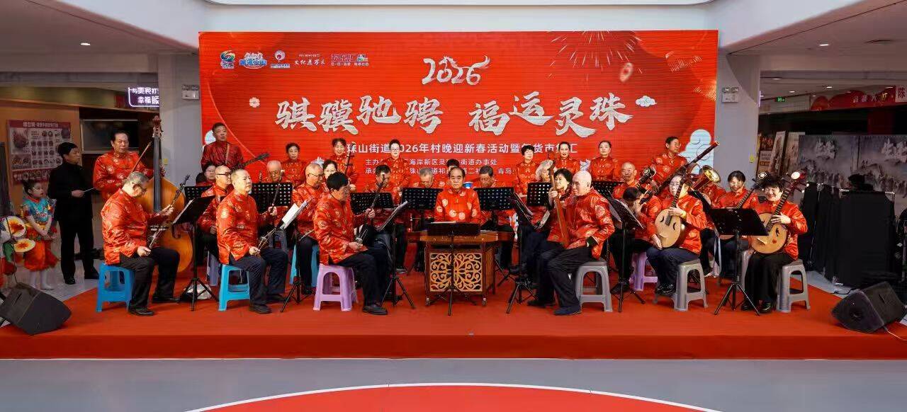 2月7日,灵珠山街道“骐骥驰骋 福运灵珠”2026年村晚暨年货大集活动在欢乐汇三楼热闹开演。本次活动紧扣“海洋大集”新春季和“我们的中国梦——文化进万家”主题,通过“文艺展演+特色市集+文旅推介+生态科普”多元融合的形式,为辖区居民奉献了一场接地气、聚人气、有生气的文化盛宴,在欢声笑语中共迎新春佳节。