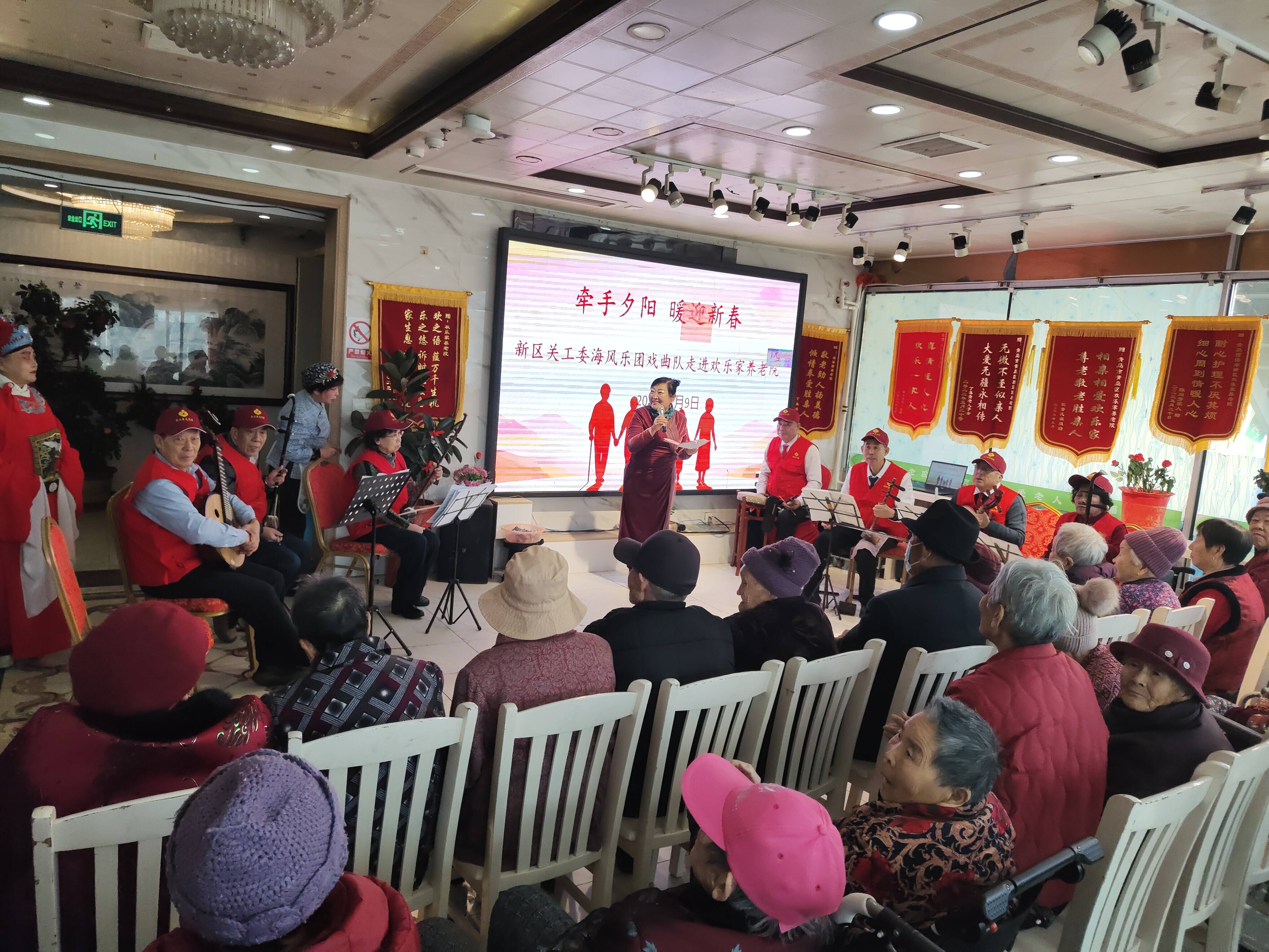 2月8日,青岛西海岸新区关工委海风乐团先后走进欢乐家养老院和福爱老年公寓演出文艺节目,为老人送上新春祝福。