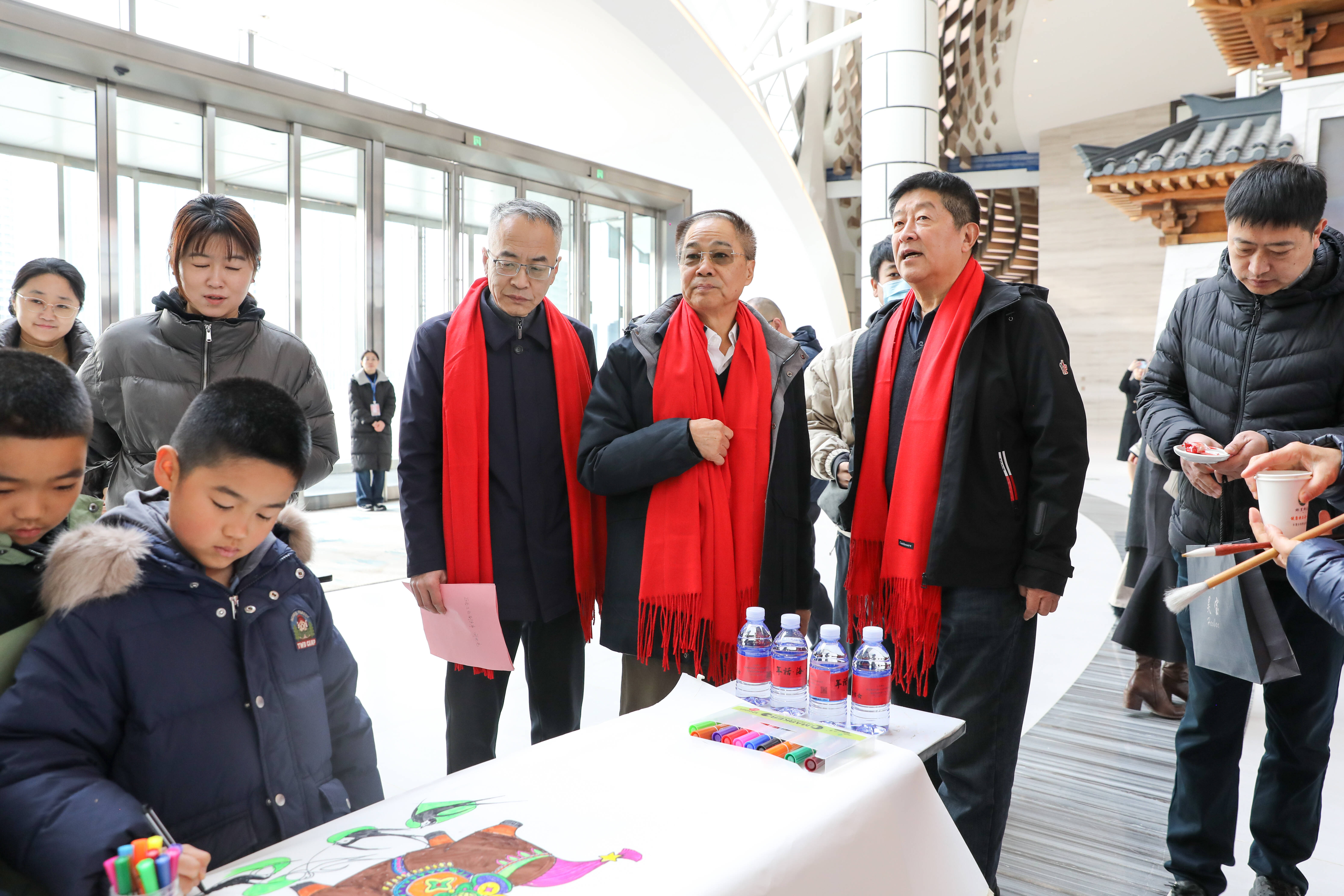 在众多嘉宾们充满期待的目光中,部分嘉宾上台进行了剪彩,标志着“年话・海・十二品”作品展正式开幕。展厅内,一幅幅精美的年画作品吸引了众多老少观众的目光。这些作品不仅展现了胶南年画的传统技艺,更融入了现代艺术的创新元素,让观众在欣赏中感受到了非遗文化的魅力和活力。一位年轻的参展观众表示:“以前总觉得年画是老一辈人的喜好,今天看到展览才发现,原来年画也可以这么时尚、这么有活力。这种传统与现代的结合,让我对年画有了全新的认识。”特别是部分青少年学生的场景化参与,以及和专家老师们的互动把活动引向高潮。