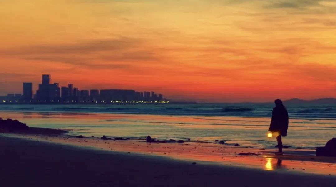 沙滩、礁石、楼宇,