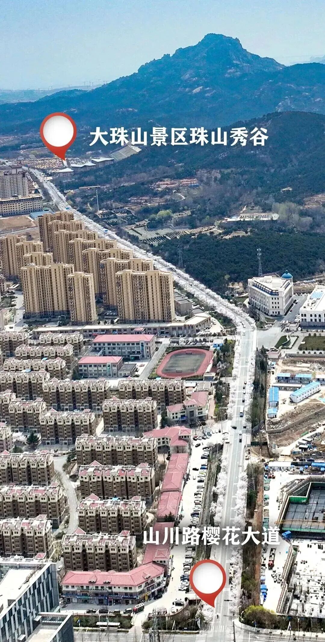 如果说西海岸有一条樱花大道能刷屏朋友圈,那一定是山川路!从山川路延伸至大珠山珠山秀谷,足足2.2公里的樱花长廊,是春日里最动人的风景线。