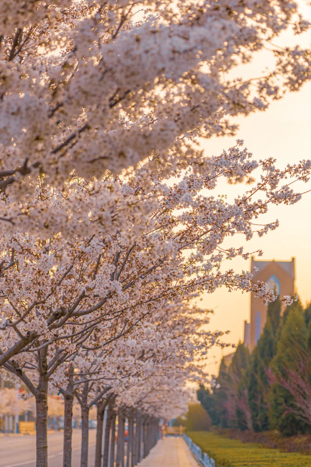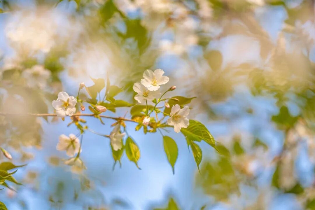 一树树樱花如云叠、似霞染,晶莹剔透地缀满枝头,蜿蜒成一道流动的芬芳诗行,与宁静的小镇街巷相映,藏着独有的温柔气息。