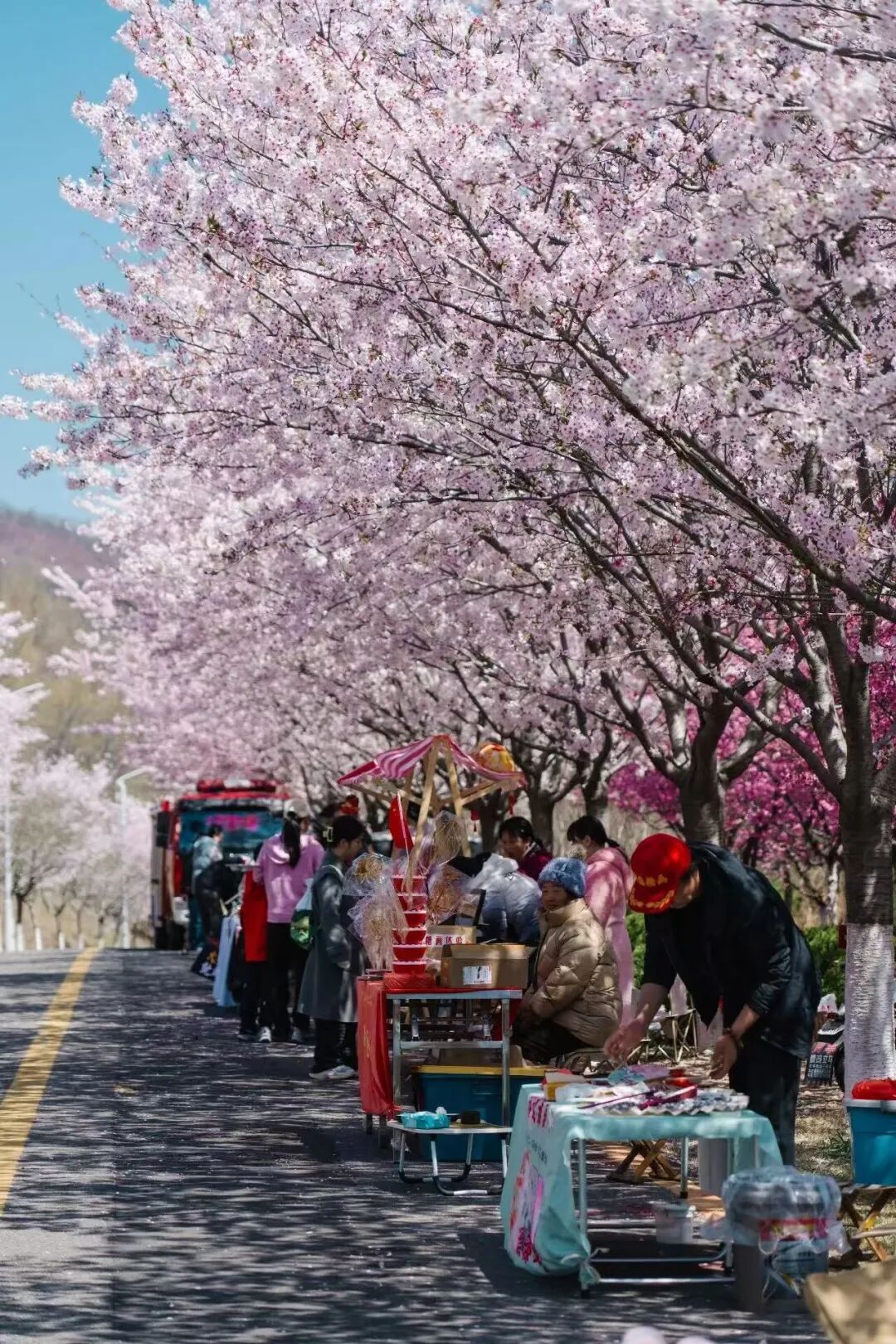 除了赏樱,藏马山樱花节还设有热闹的樱花市集,美食、文创、妆造、旅拍应有尽有,逛吃逛玩两不误;带上野餐垫和零食,在樱花树下晒太阳、聊聊天,便是春日里最惬意的时光。