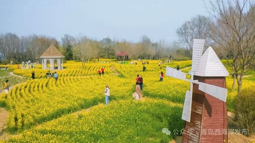 西海岸生态观光园的百亩油菜花,则是另一种田园诗篇。金黄的花穗,随风摇曳,每一朵小花都有四片花瓣,簇拥着中间嫩黄的花蕊。清明假期,青岛西海岸生态观光园油菜花生活节同步启幕,古风NPC与你对诗猜谜,尽享春日浪漫。