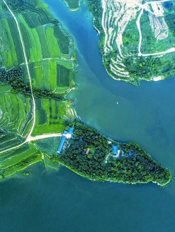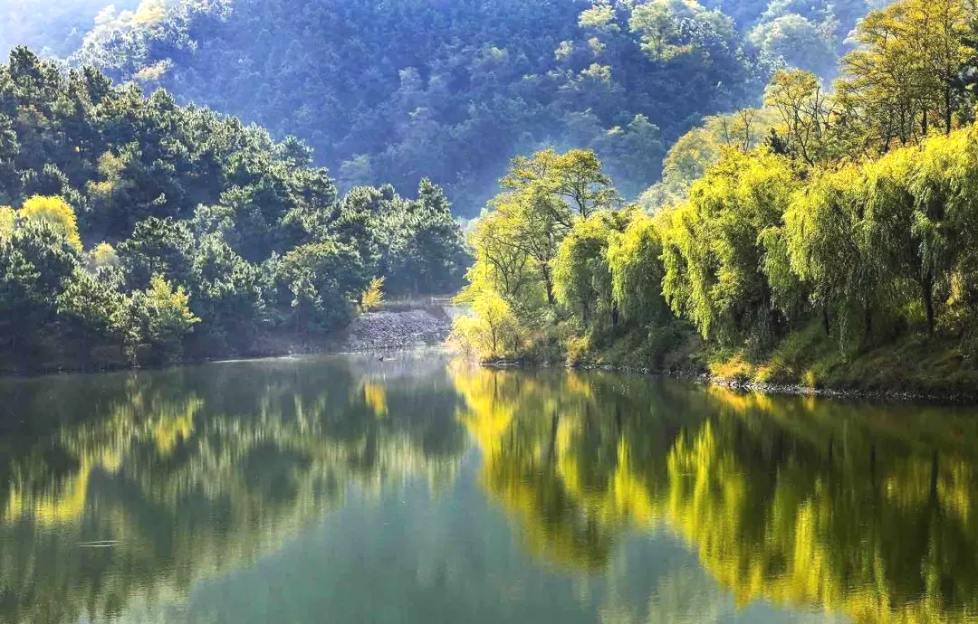 山抱湖,湖映山,一幅天然的山水画卷在眼前展开。阳光洒下,水面上波光碎成万千星辰。风从湖面吹来,带走了喧嚣,只留下内心的宁静与澄澈。
