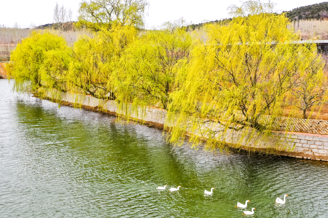 湖边垂柳新绿,风一吹,柔软的枝条轻轻拂过水面,像是在和春天悄悄说话。