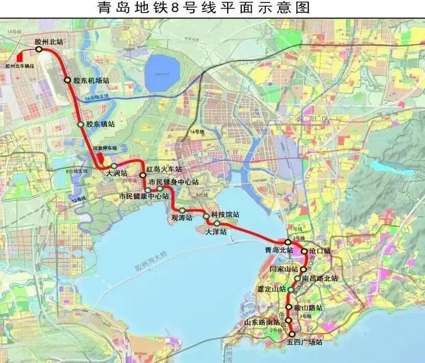 8号线南段作为连接主城区与胶东机场的快速通道,全长13.1公里,起于青岛北站,止于五四广场站,共设7座车站。线路通车后,从五四广场到胶东机场,坐地铁50分钟内可直达。