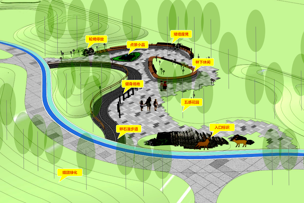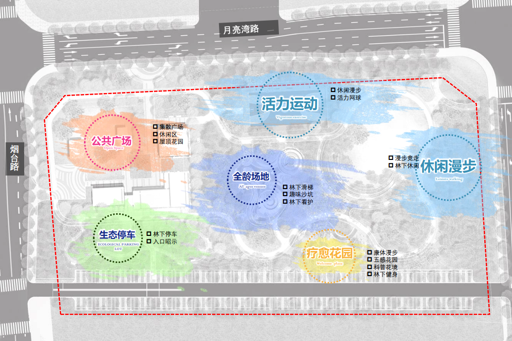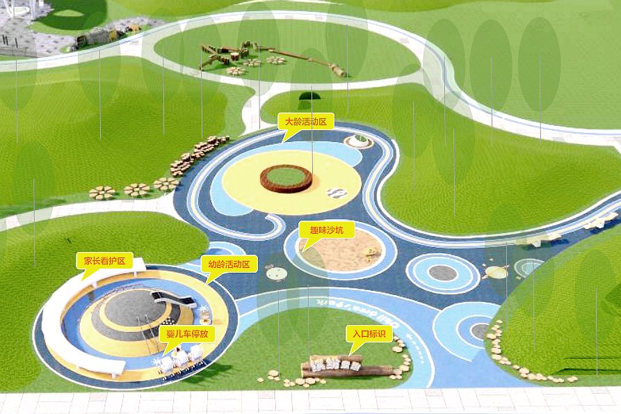 该项目在设计上致力于打造全龄多元一站式幸福空间,在65%绿地率的基底上,精心布局公共广场区、活力运动区、全龄活动场、疗愈花园区、休闲漫步区、生态停车区六大功能分区,配备球类场地、儿童游乐设施、老年康体器材、管理用房等设施,并规划30个停车位,有效缓解周边社区“停车难”问题。