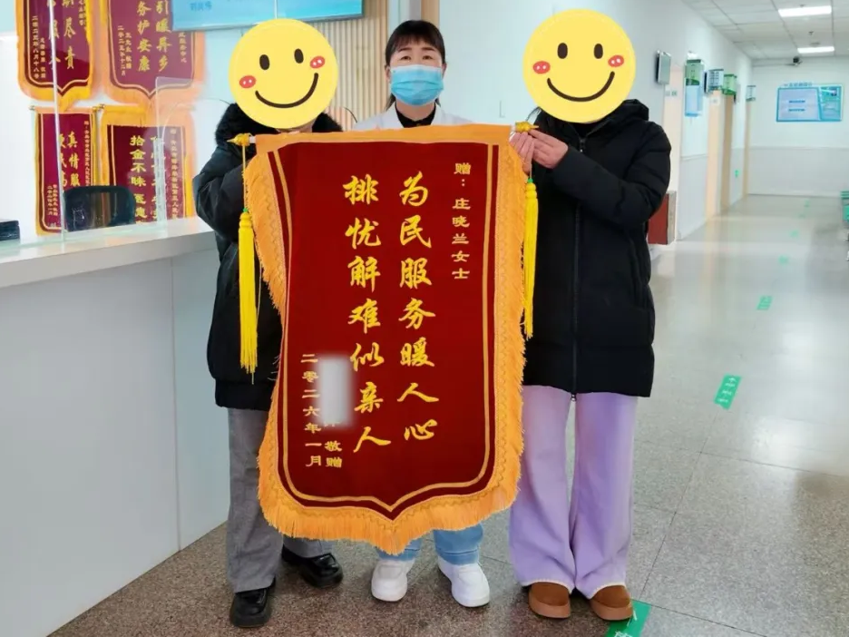 经过及时手术与术后精心护理,老人身体逐步康复。家属为表达对庄晓兰及医院服务的诚挚感激,特意定制锦旗相赠。