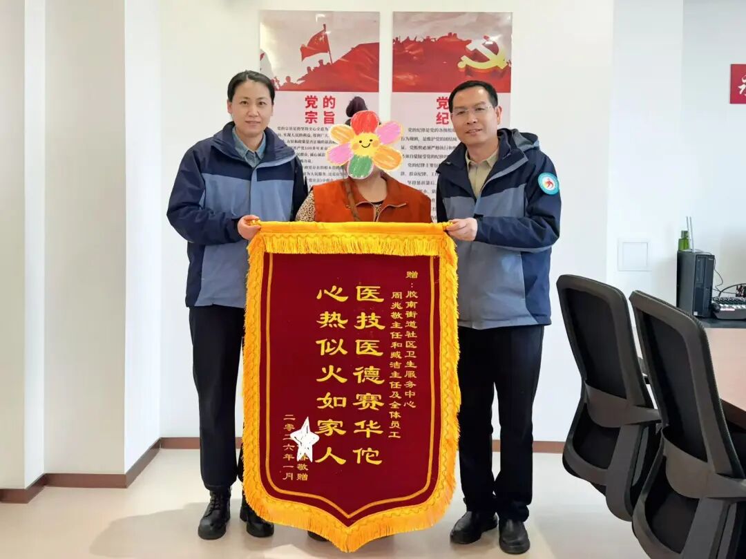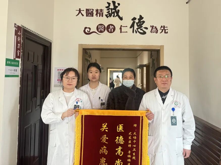 2月6日上午,患者任女士将一面印有“医德高尚医术精,关爱病患暖人心”的锦旗送到大场中心卫生院中医科医师尤东、鲁楠楠手中,这不仅是一句赞美,更是一份沉甸甸的信任。
